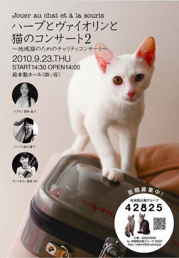 尚、このコンサートの収益金の一部は地域猫の避妊・去勢手術費用および医療費に充当されます。