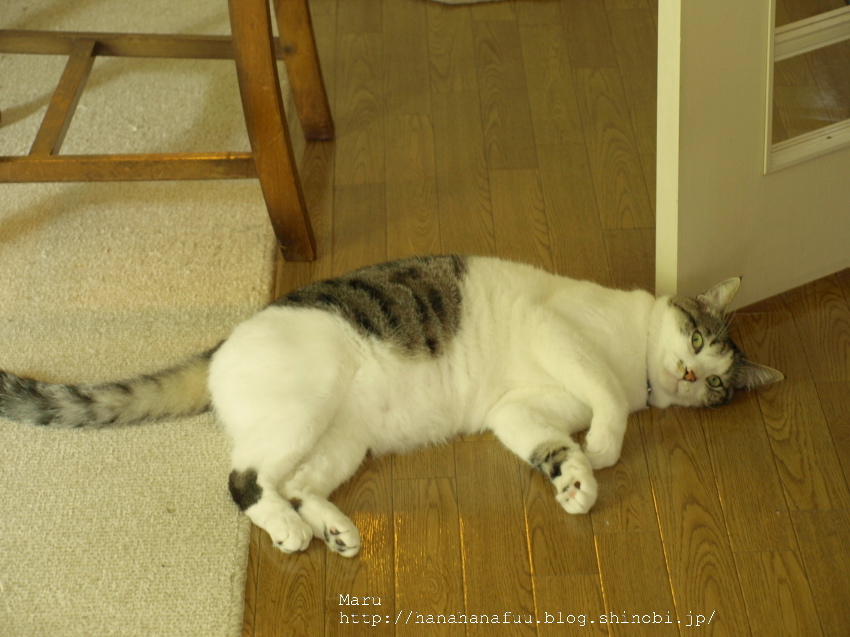 ゴロンとどこでも横になるマル。  マ「だめ?」