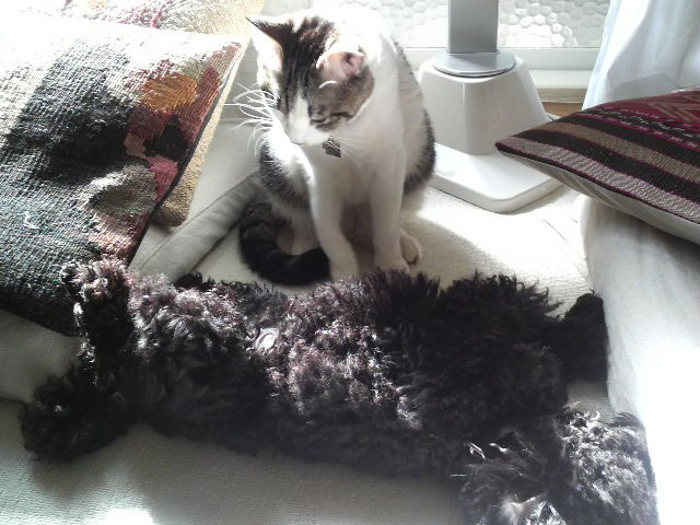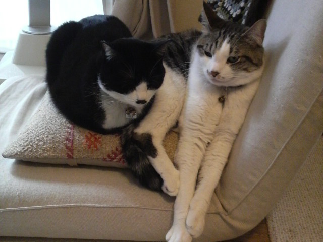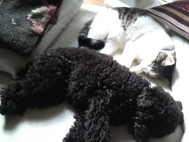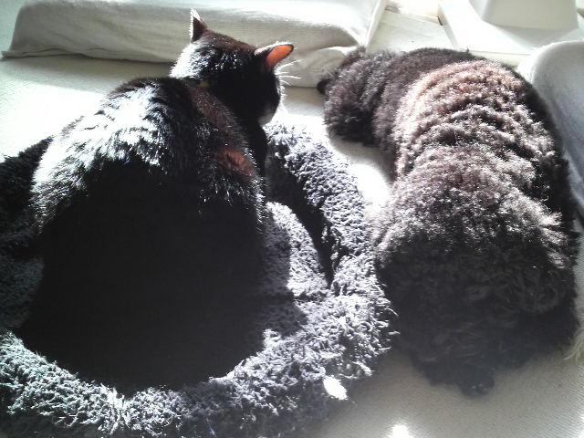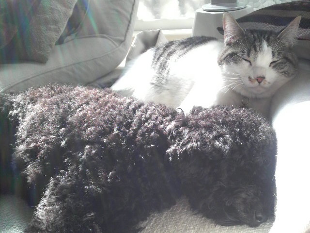 ポカポカの日だまりの中、とうとうマル&ボブの添い寝姿をキャッチ