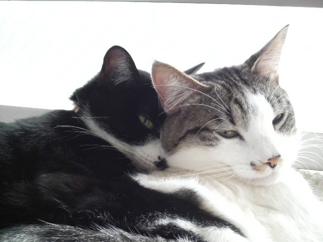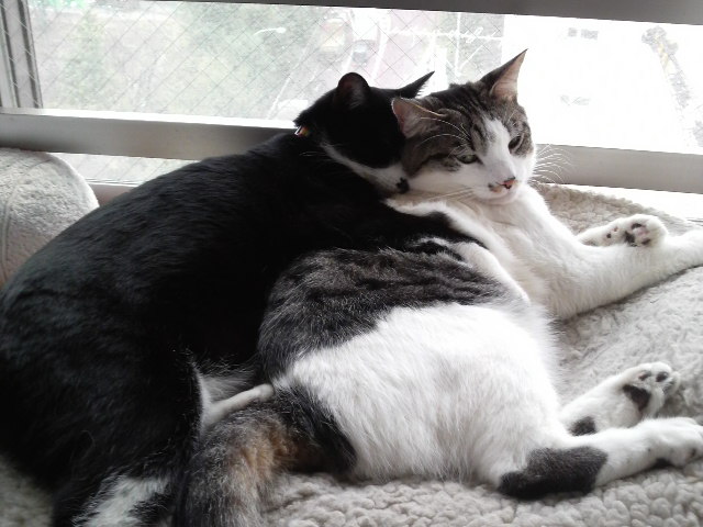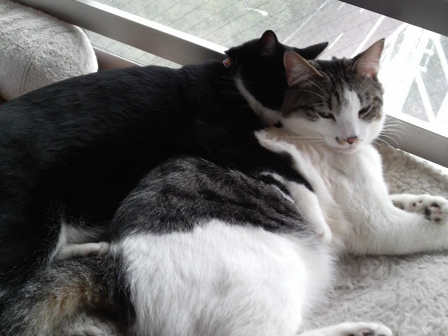 寒くって、ハナ(♀)マル(♂)にくっつく