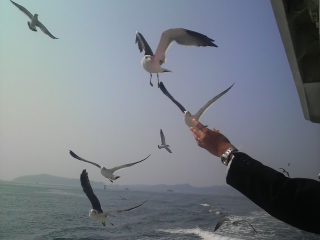 「餌をくれー」っていうウミネコの真剣な眼差しに夢中になった。
