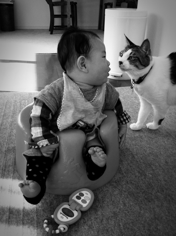 マ「オッス。」 ムスコ(5ヶ月)「こんにちは〜♪」