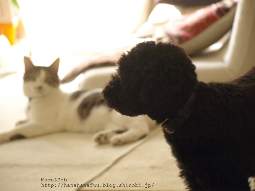 しっかり者のハナ(猫♀),マイペースで猫喘息持ちのマル(猫♂)、黒トイプーのおとぼけボブ(♂)犬猫の日々の日記です。