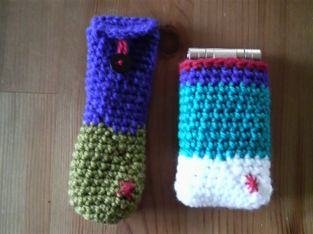先週作った真っ青な小物入れに真っ赤なモチーフをつけてみた。