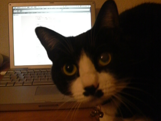 最近PCによく向かっているので、「おい!遊べ!」と邪魔をするハナ。